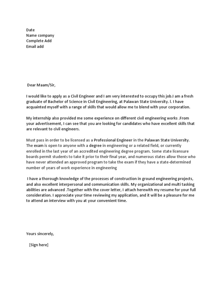 Cover letter for civil engineering jobs fresh graduate. We did not find results for: Maybe you would like to learn more about one of these? Check spelling or type a new query.