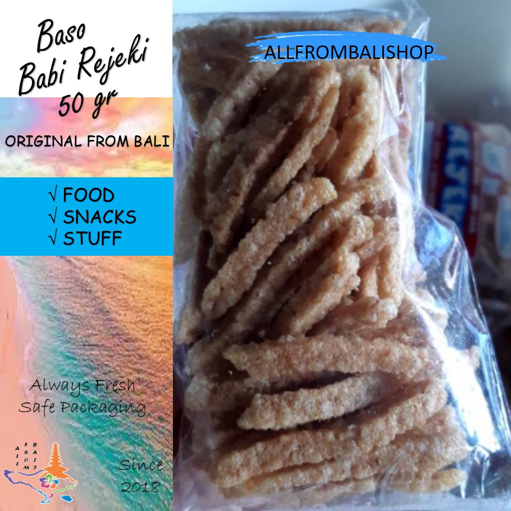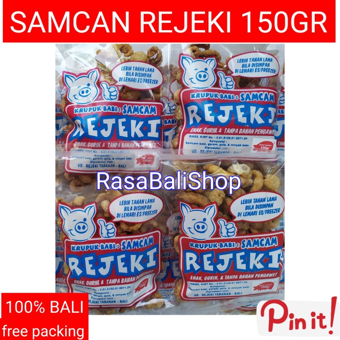 Kerupuk kulit babi rejeki adalah merek kerupuk babi paling populer sebagai oleh oleh khas bali.